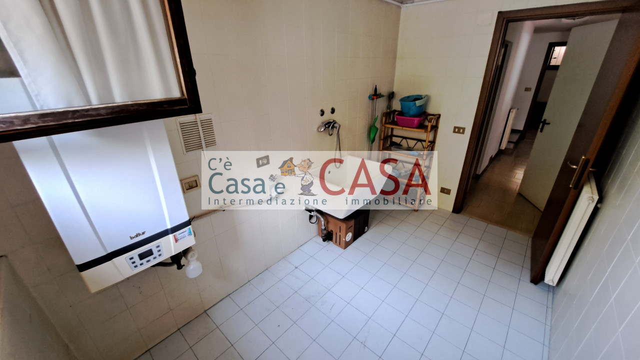 S. DOMENICO: Bellissima zona molto tranquilla e signorile, l’agenzia C’è Casa e CASA vi invita a prendere visione di questo elegante villino a schiera centrale est-ovest con ingresso indipendente dal giardinetto privato nel luminoso soggiorno al piano rialzato servito da un piccolo portico, una ampia cucina con terrazzino, un bagno finestrato con doccia ed uno sgabuzzino, al piano primo-notte troviamo tre camere da letto, due matrimoniali, da 18mq e da 15mq con accesso ai rispettivi poggioli, ed una singola, un bagno finestrato con doccia e un armadio-sgabuzzino, al piano seminterrato possiamo apprezzare una funzionale taverna collegata ad una lavanderia-c.t., un ripostiglio sottoscala ed il comodo garage accessibile dalla corsia carraia condominiale. Le dotazioni sono tutto il mobilio, le zanzariere, le tende da sole, le tende interne, i lampadari, l’allarme ed un condizionatore. Caldaia sostituita nel 2013 con una a condensazione. Gli affacci sul verde e lo spazio visivo aperto sono i fattori principali che non invecchiano mai e danno il vero valore aggiunto a questa bellissima unità immobiliare. Se il presente immobile non rientrasse nelle vostre aspettative disponiamo di molte altre proposte. Forniamo supporto per istruire mutui ad ottime condizioni, eseguiamo consulenze immobiliari, perizie, attestati di prestazione energetica, attestati di stato legittimo, progettazione, ristrutturazioni edili, pratiche edilizie in genere (Permessi di Costruire, Veneto 2050, SCIA, CILA), pratiche catastali, relazioni di regolarità urbanistica e catastale. " C'è Casa e CASA " tel. 049-638844 - Cell. 340-2557730 (c.e. D - Ep 118,71 kwh/mq*anno) € 275.000 – V14